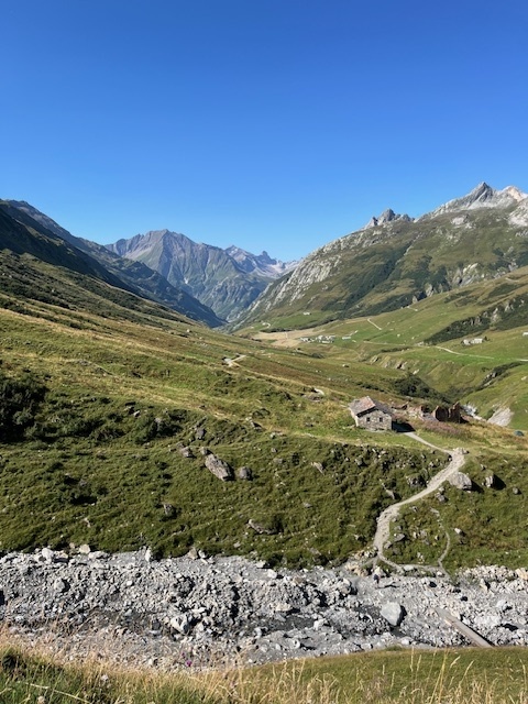 Vi passerer denne dag Val Cleret en summit som mange UTMB løbere omtaler med respekt. Der er forbandet langt op fra dalen til toppen, hvor der kun er få ganske kort passager uden stigning.
